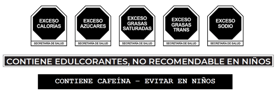 ¿Has notado los sellos negros en los empaques de galletas, cereales o bebidas? Desde 2020, México cuenta con un etiquetado frontal de advertencia que permite identificar los productos con exceso de azúcares, grasas saturadas, grasas trans, sodio o calorías, tal como se muestra en la Figura 1 a continuación. Además, incorporara leyendas cuando los productos contienen edulcorantes o cafeína, e incluye una tabla nutrimental estandarizada a 100 g o 100 ml, lo que facilita comparar entre marcas.